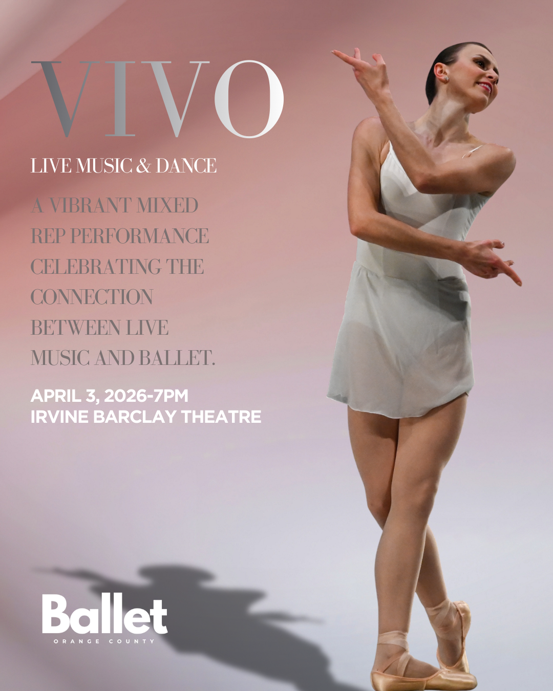 Inspired by renewal, growth, and the energy of the season, VIVO captures the feeling of coming alive, when artistry feels immediate, human, and shared. This program invites audiences into a dynamic conversation between music and dance, offering a fresh and intimate way to experience ballet..